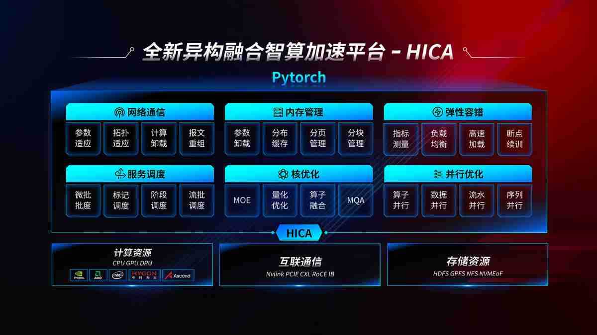 通过自研的服务层、、中间适配层、、以及调度编排算法,,,,采用数据并行、、、模型并行等多种并行方式,,把并行计算任务进行有效的分解,,,,使其分别由相应的软件栈和算力资源来承接。。。。当GPU资源变化,,,HICA可以实时动态调度计算子任务并调整模型拓扑和架构,,以充分聚合各种算力资源。。。。