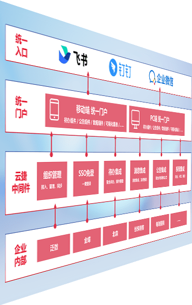 对协作平台提供支持服务,,支持企业应用与协作平台对接,,,,包含组织同步、、消息集成、、待办集成等。。。支持目前主流的协作平台:钉钉、、企微和飞书。。。